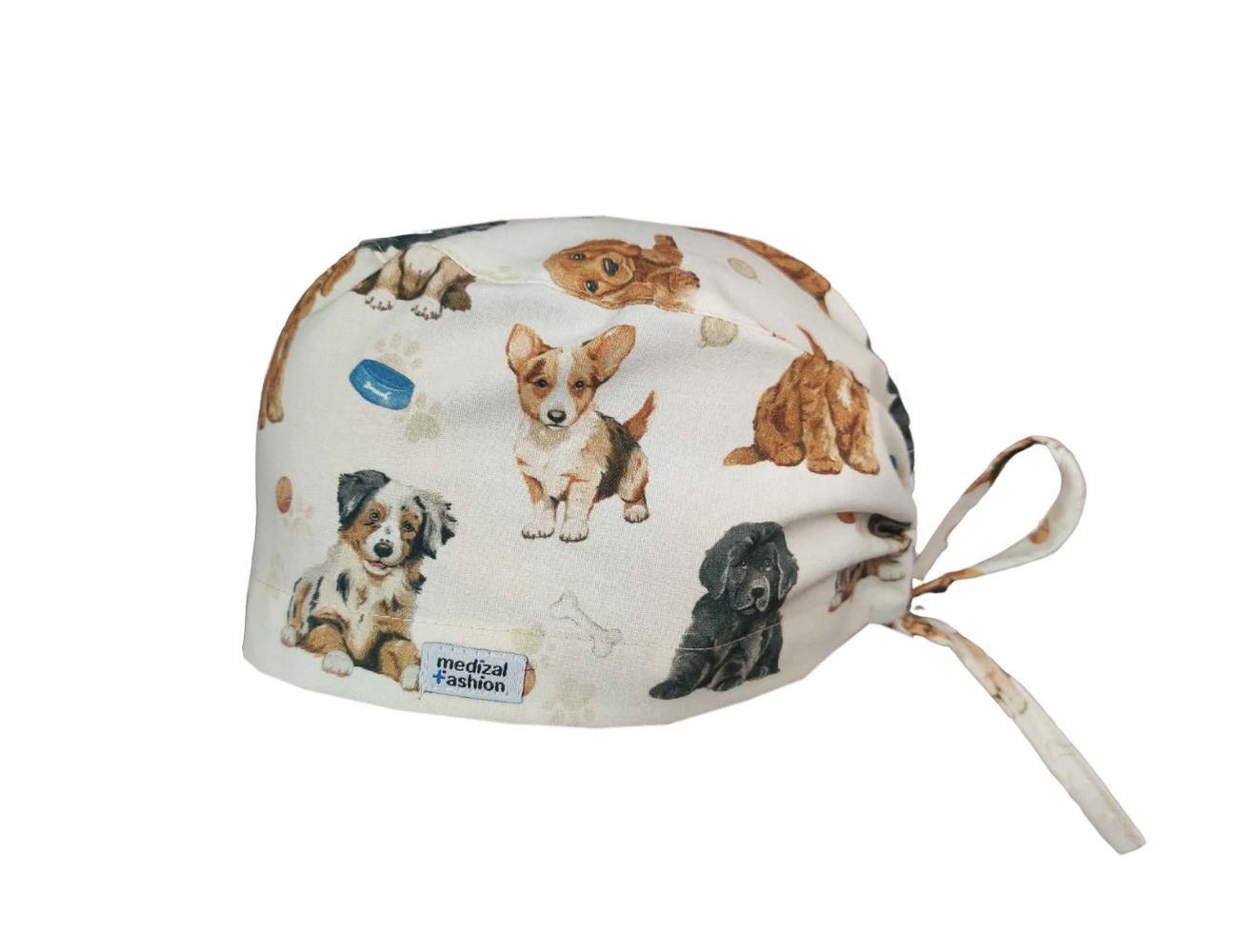 Czepek medyczny z troczkami - wzór szczeniaczki - bawełna premium