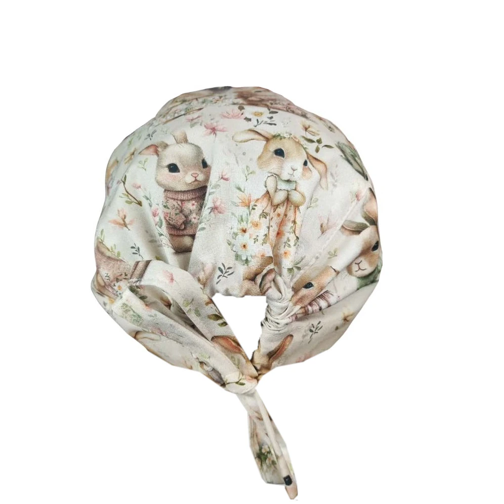 Czepek medyczny z troczkami - wzór rodzina króliczków - bawełna premium