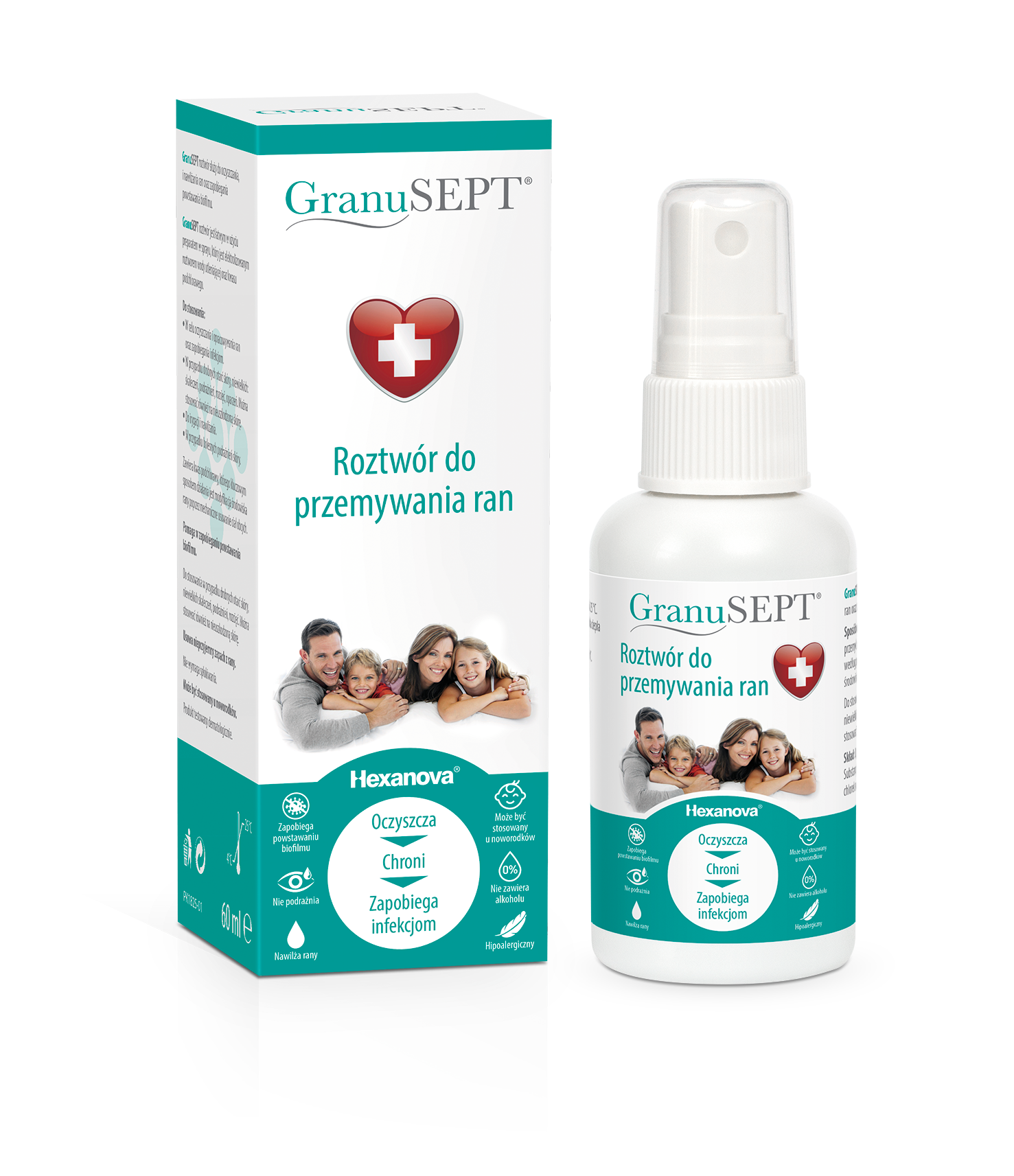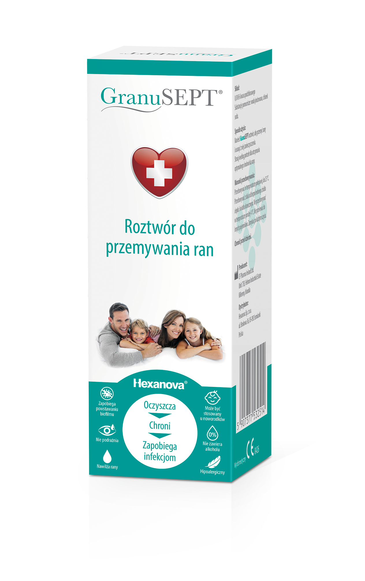 Roztwór do przemywania ran GranuSept® to elektrochemicznie zmodyfikowany roztwór wody, stabilizowany kwasem podchlorawym. Służy przede wszystkim zmianie środowiska rany: mechanicznie usuwa ciała obce, które mogą powodować podrażnienia i infekcje skóry oraz zapewnia optymalne nawilżenie, wilgotność, dotlenienie oraz pH, wspierając w ten sposób proces gojenia.