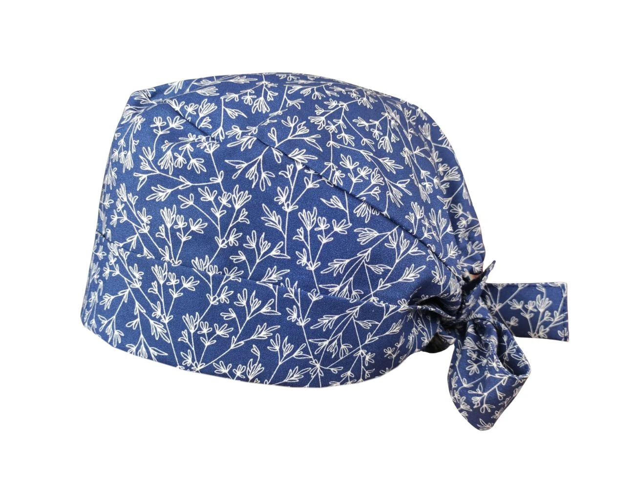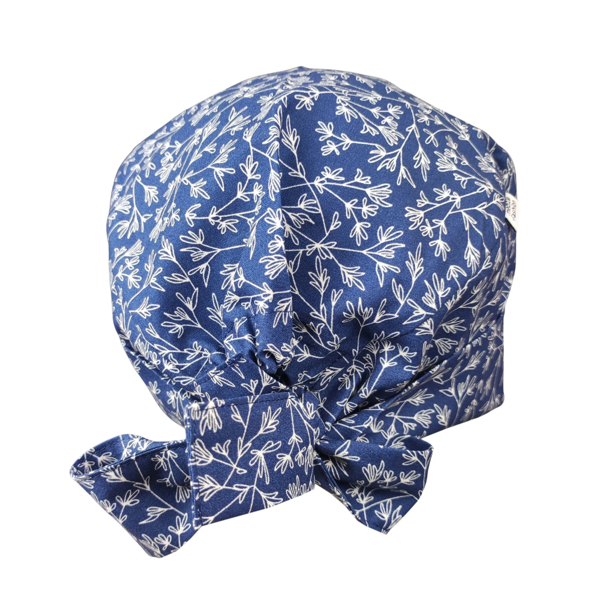 Czepek medyczny wiązany - granatowy w białe gałązki