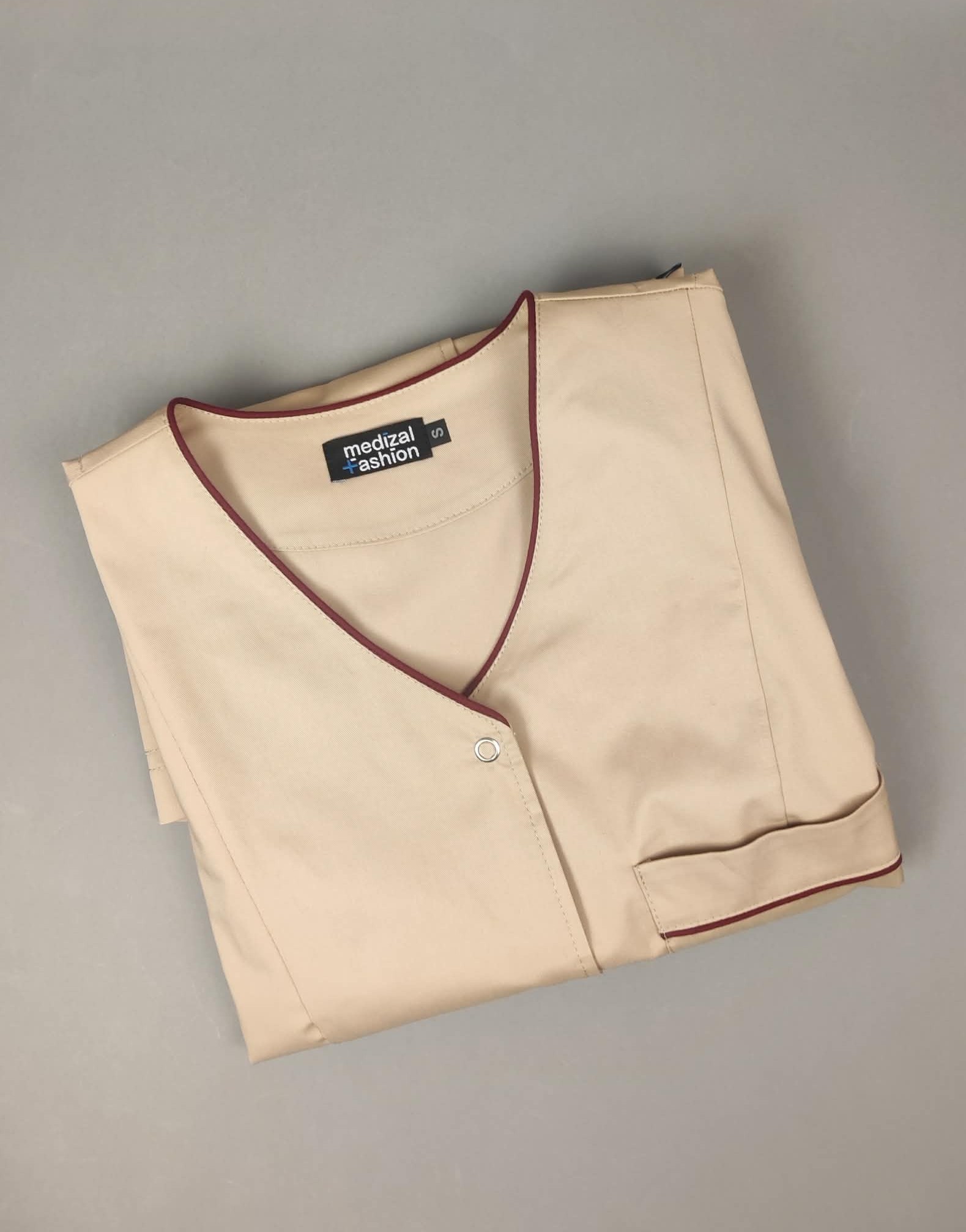 Żakiet medyczno - kosmetyczny Iris Prima beżowy z kolorową lamówką